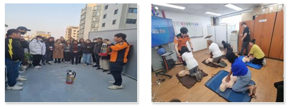 | 화재나 지진, 심정지 등 위급상황이 발생한 경우 대처할 수 있도록 체험형 안전교육을 정기 진행합니다. |