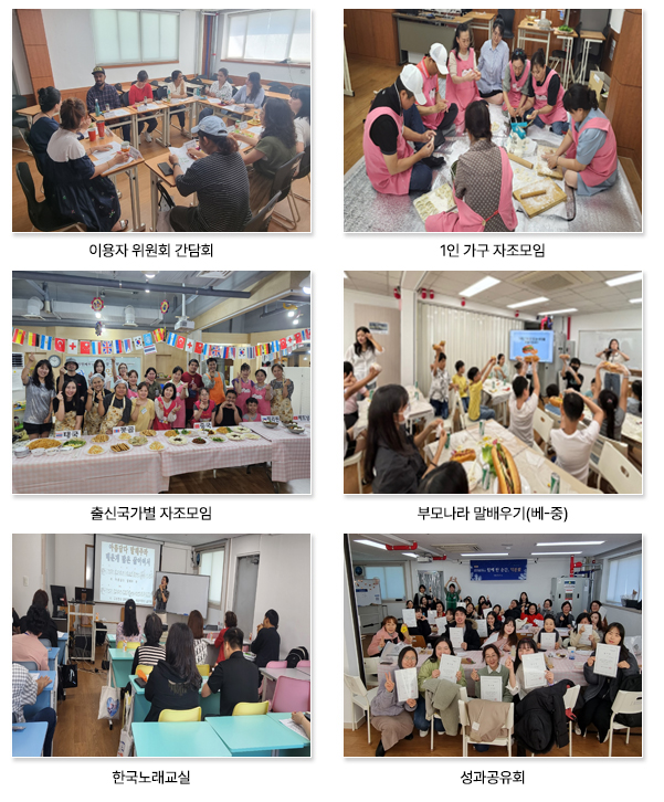 - ‘출신국가별 모임’: 같은 나라 출신 이주민 간의 동료애를 느끼고, 다른 국가 출신 이주민들과 소통할 수 있는 기회에 참여할 수 있습니다.