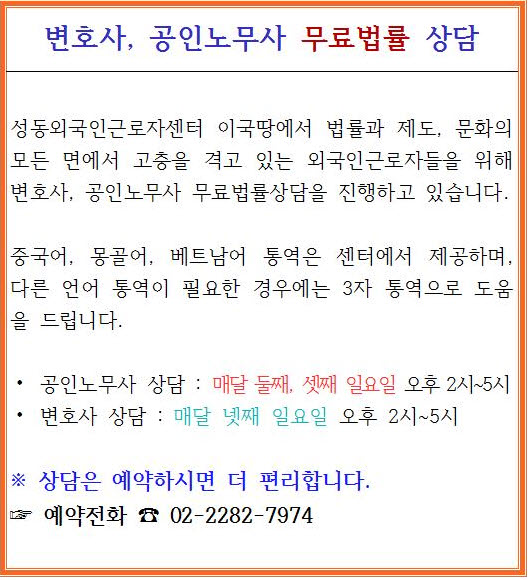 [무료법률상담] 변호사, 공인노무사 무료법률 상담합니다.