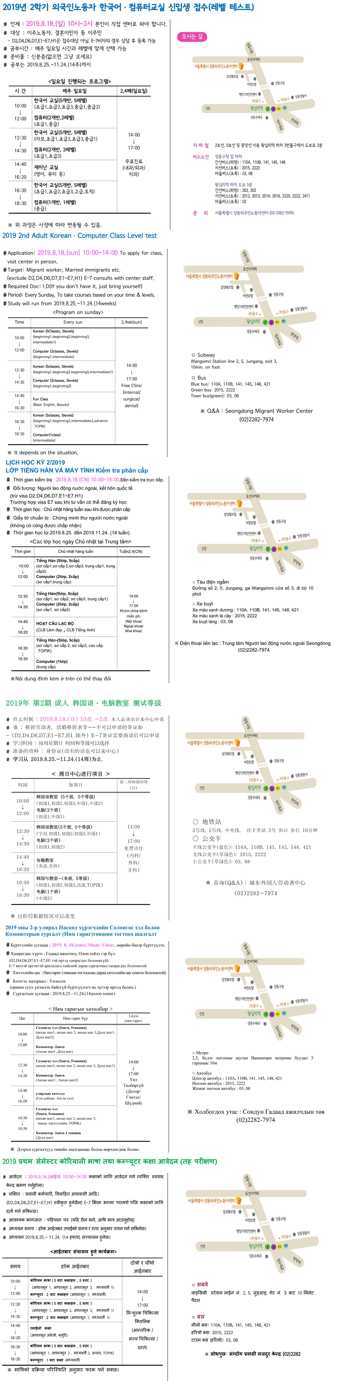 2019년 2학기 한국어,컴퓨터 신입생접수(8/18)
