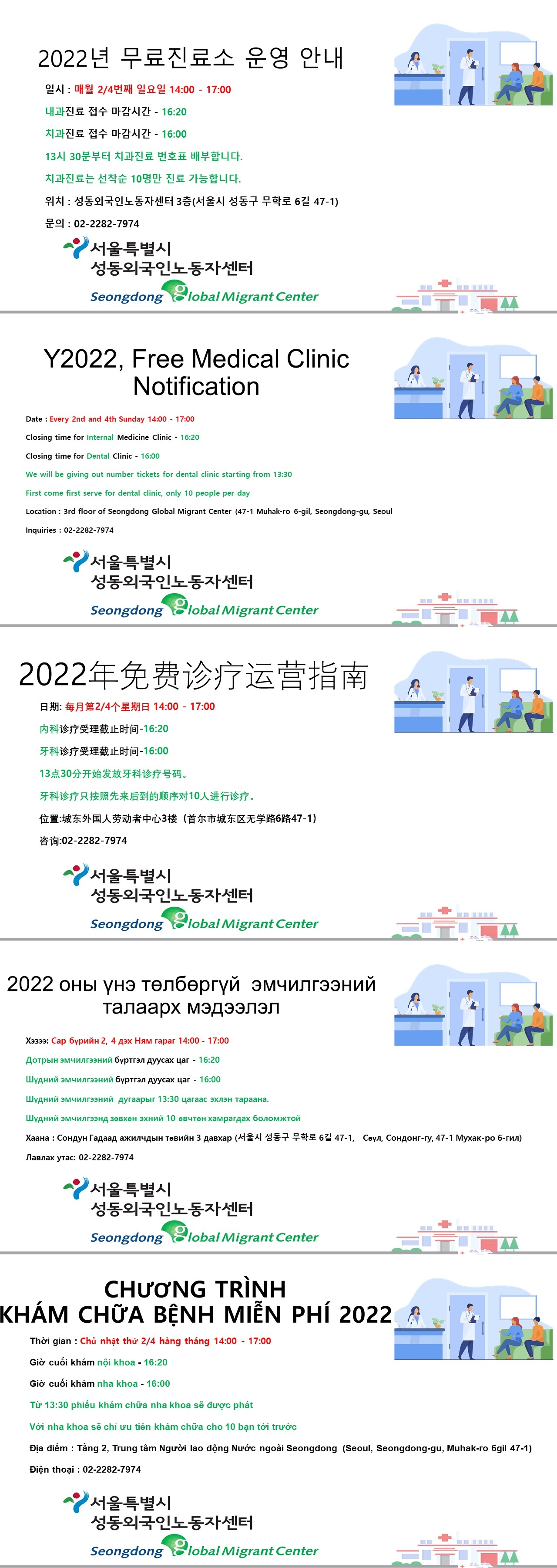 성동외국인노동자센터 무료진료소 안내