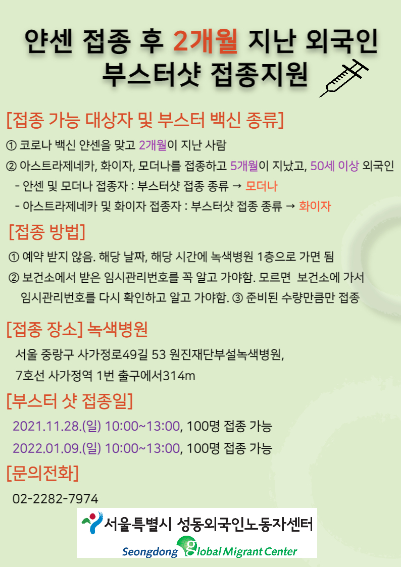 코로나백신 얀센 접종 후 2개월이 지나신 분들께 부스터샷 접종을 지원