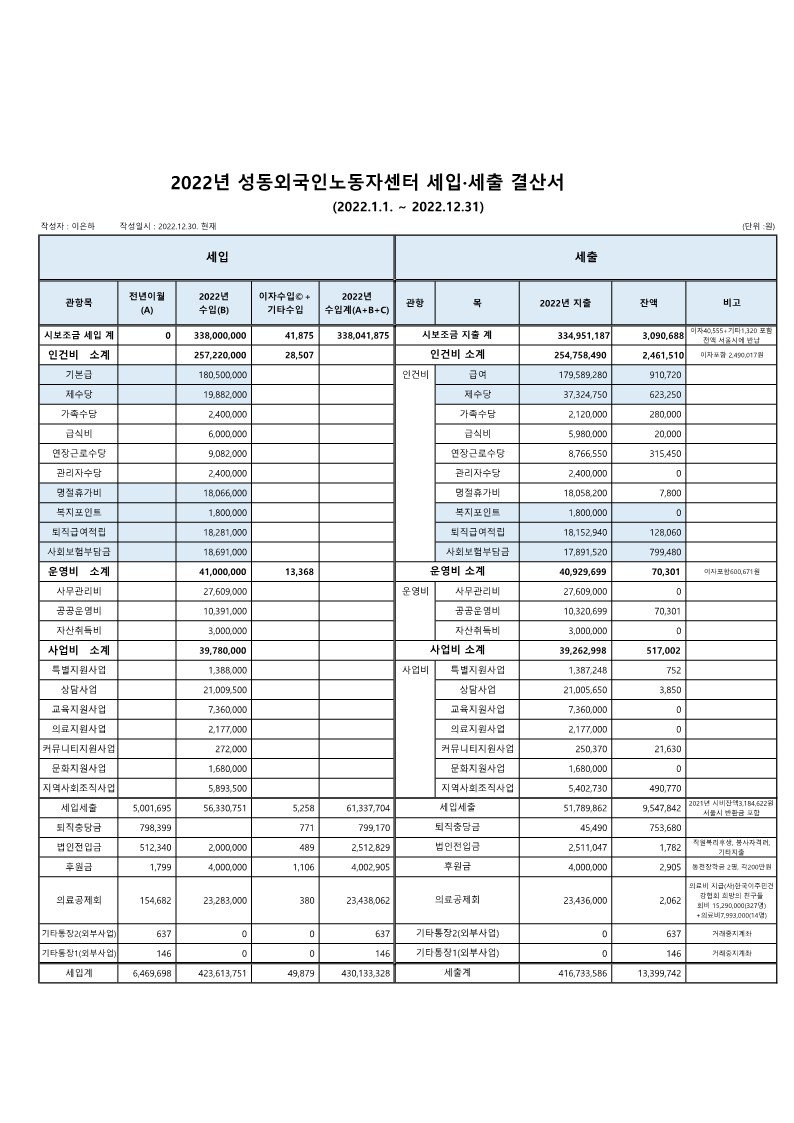 2022년 성동외국인노동자센터 결산서