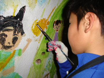 벽화작업을 하는 지구촌학교 아동