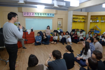 한국어, 컴퓨터, 아동청소년, 아장아장, 카페, 상담, 의료 등에서 활동하는 봉사자 전체 모임으로