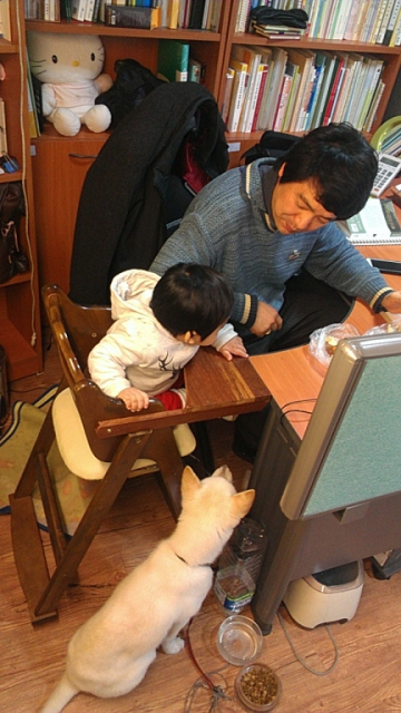 기관장님 책상 옆에서 경쟁하고 있다. ㅎㅎ