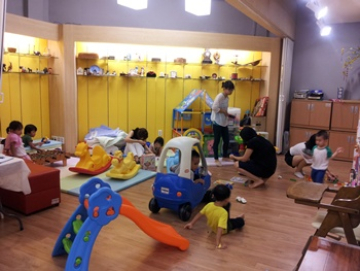 수업듣는 엄마, 아빠와 같이 온 아이들이 놀고 있는 아장아장의 모습이예요~