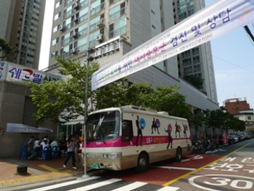센터 앞에 성동구보건소 버스가 와서 센터 이주노동자들을 대상으로